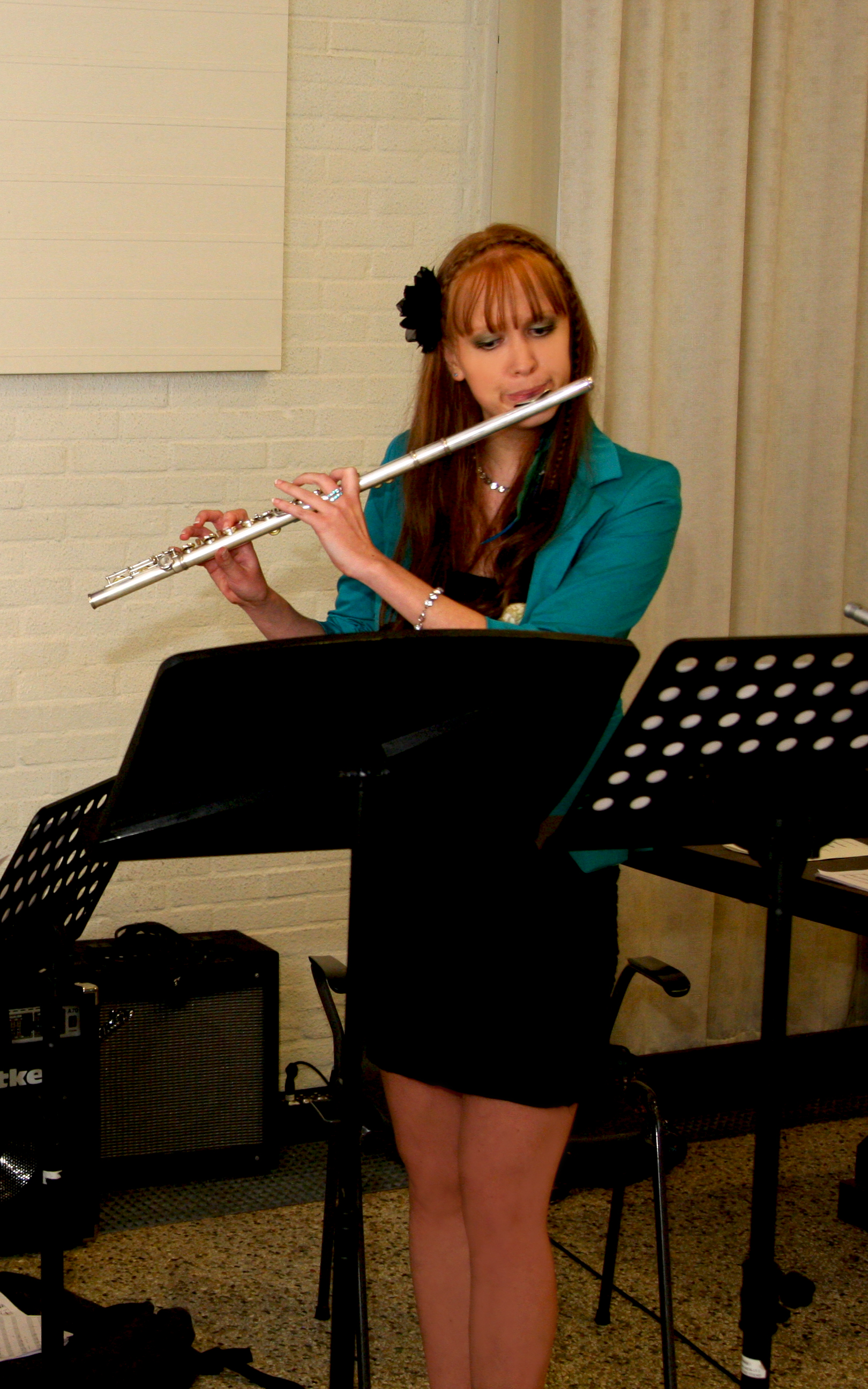 Dwarsfluitles kreeg ik in Bedum. Daar waren vaak muziekavonden waar ik aan mee wilde doen. In die tijd was ik erg fan van Starmaker/K-otic, dus die nummers wilde ik graag kunnen spelen. Ik schreef de noten in letters uit op papier. Tijdens één muziekavond zag ik in het programmaboekje dat ik een heel ander nummer ging spelen dan dat ik had geoefend. Dat liet ik niet merken en het ging goed. Vanaf dat moment merkte ik dat ik wel op gehoor kon spelen, dus schreef ik het niet meer uit. Nadat ik gestopt ben met de lessen heb ik een paar keer op een bruiloft gespeeld. Ook werd ik gevraagd om te spelen tijdens de dansvoorstelling van Addance in Groningen en in mijn eindvoorstelling van de theaterschool. Op dit moment speel ik af en toe nog gewoon thuis.